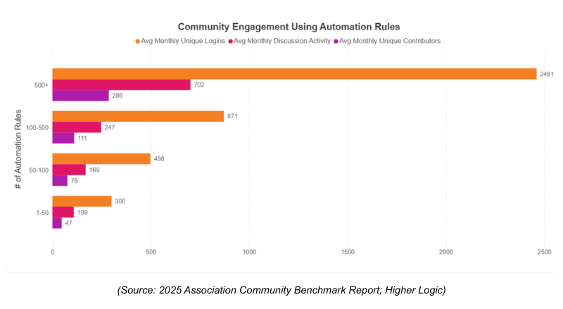 The 2025 Association Community Benchmark Report reveals that communities that invest in automation and engagement design see two times more logins and higher contributor and discussion rates. These tools are most effective when paired with clear onboarding journeys. Without a clear onboarding journey, members can easily ignore the community entirely.